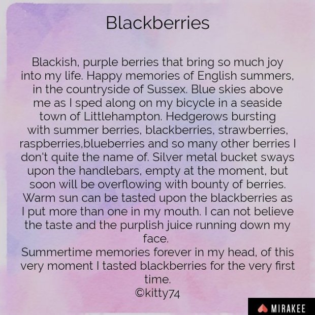 I just in fact wrote a little prose about my blackberries experience on my Mirakee account, I so didn’t want to forget that moment in my life at all. It is so vivid in my mind now, I am quite sure that I won’t forget it again. I have put it in the visual down below this post and hope you will enjoy it.