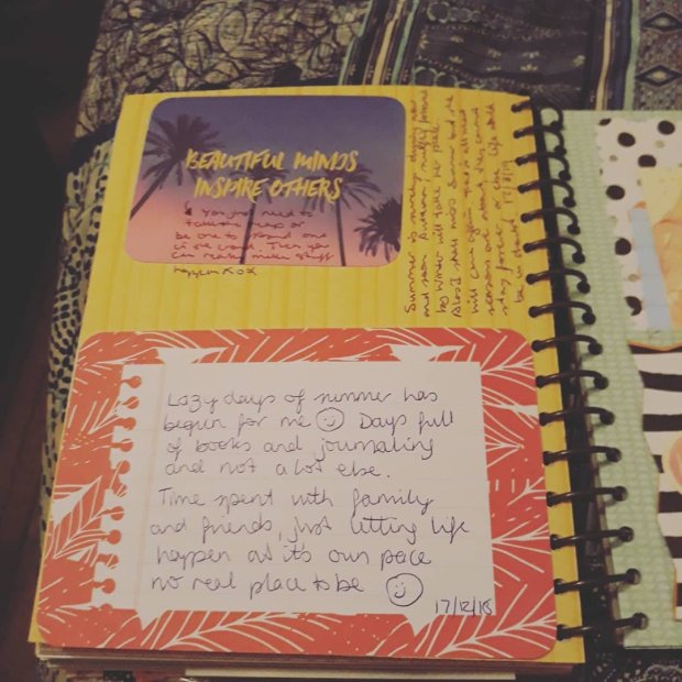 One of my recent journal spread was about the seaside and my childhood memories, as well as my artist’s date, I went on to Bather’s beach in Fremantle. I had the basic bones of the page, but only yesterday filled out the journaling bit. I love my journal and love showing it off, because I am so proud of what I have achieved.