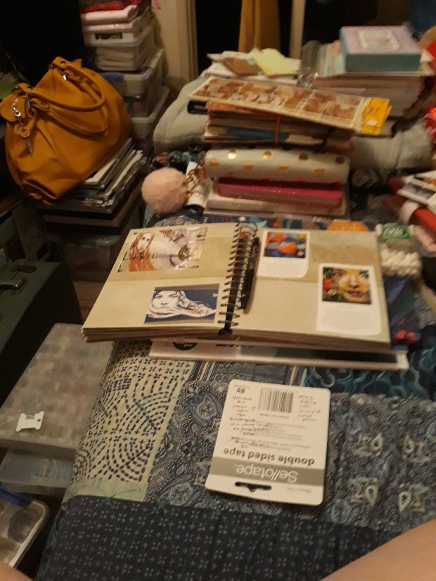 Journaling has helped me to let go, of a lot of objects that I have been holding onto, for way too long. I feel cleansed and happier not carrying a weight of stuff around with me anymore. I am opening up on the page more with little things, and finding my Mojo has helped. A Messy workplace helps me lose myself into the flow of my creativity, where as if it was neat, I would be too afraid to let myself go. Or even make a mess.