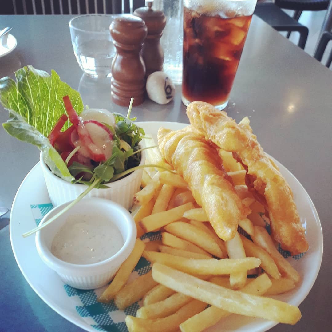 After spending some time simply listening to the waves and enjoying the sea breeze off the water. It was time for some refreshments at the Bather’s beach cafe where I had another Chai latte and did some journaling as well. Before enjoying fish’n’chips lunch and a lovely cold Pepsi max. All the while looking out over the beach, and watching the children playing around in the surf. It was wonderful indeed. The food was delicious and I just about rolled out of the restaurant afterwards. And would definitely go back again.