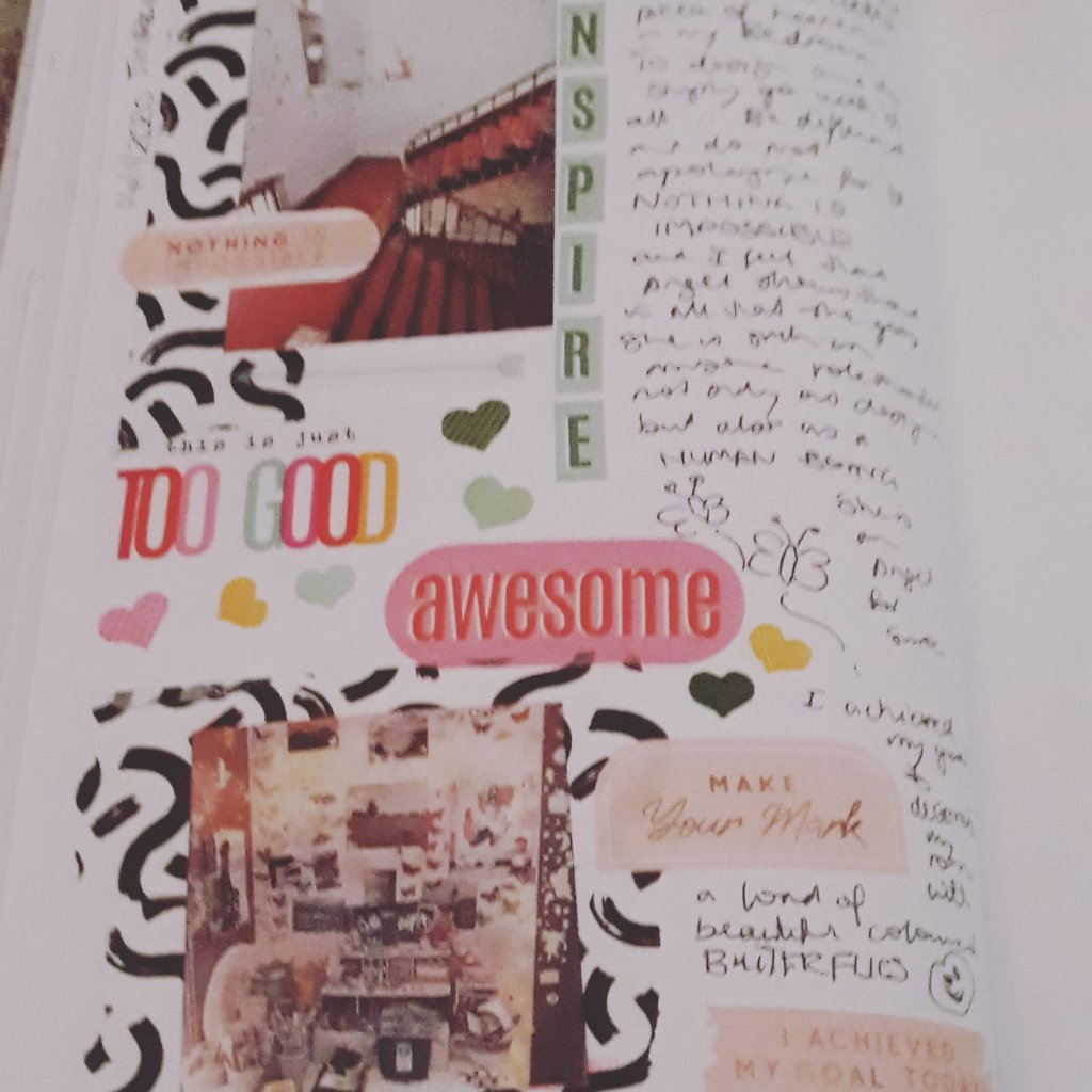 As you can see more and more butterflies are being added day by day and I love how organic the whole process is coming out. My journaling pages are coming too life, probably you could say larger than life in a way. I can’t help myself just putting one more butterfly on my wall.