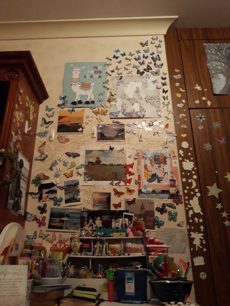 I have been wanting for months to do a butterfly wall in my bedroom, I was first inspired by Angel’s on Escape to the Chateau, when she did one in her grand staircase. And now after some time I have created the similar effect to my bedroom wall. It makes me smile look at it everyday, and currently going through some issues it helps me remain strong too.