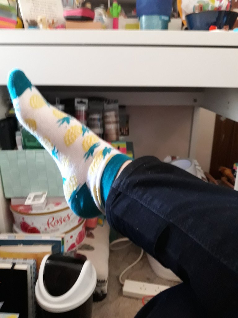 Sometimes you need to just be silly and decide today will be a pineapple sock kinda of day. Hey it is the school holidays and I think why not break the rules and routine, and wear those funky socks of mine. Well it is a fact that I work as a Kindy Aide and so I could pretty much wear these to school, and not even cause any of my Kindy children to bat an eyelid at me at all. But hey woke up and thought wear those socks.