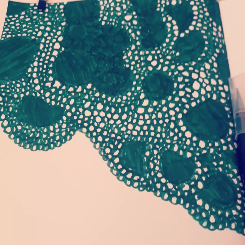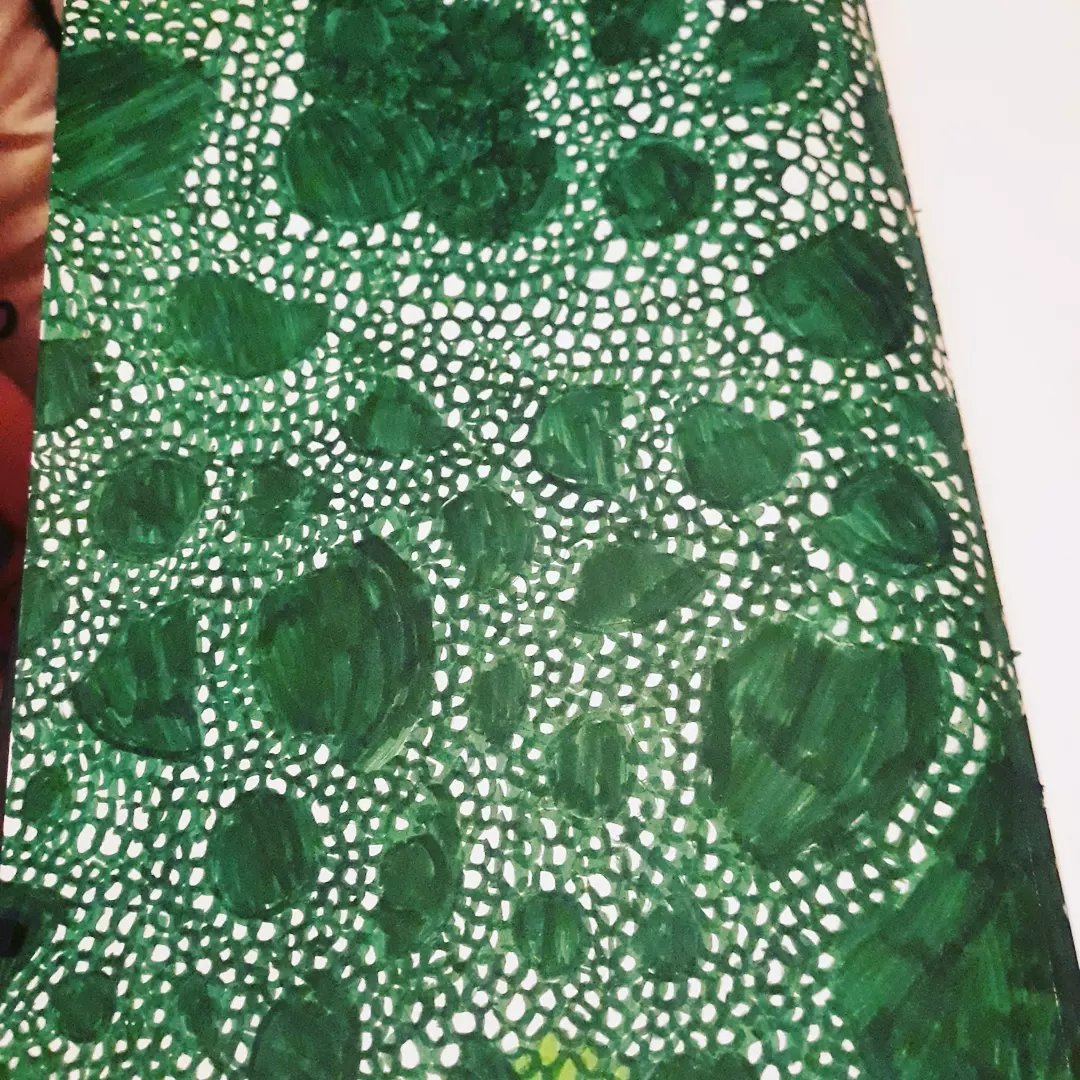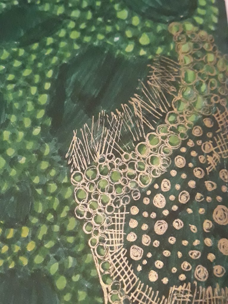 Green was for Christmas of course and gold had to go with that all, just a given you could say. I used brush markers from Target in a forest green and then lighter green for inside the circles. Gold pen was a stable in my pencil case by Signo uni-ball for added detail, or as I like to say Kylie it up. This last bit I feel really makes my pieces very unique style indeed.