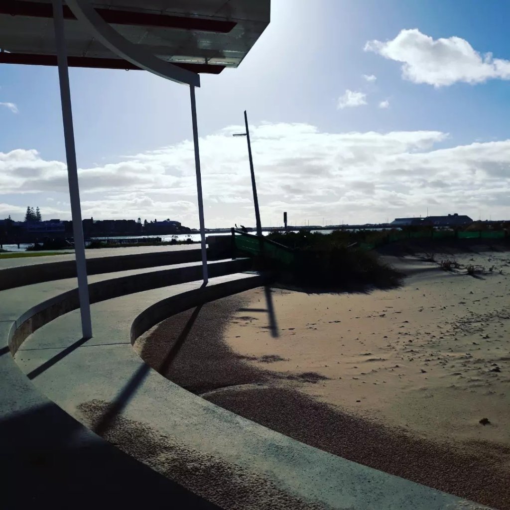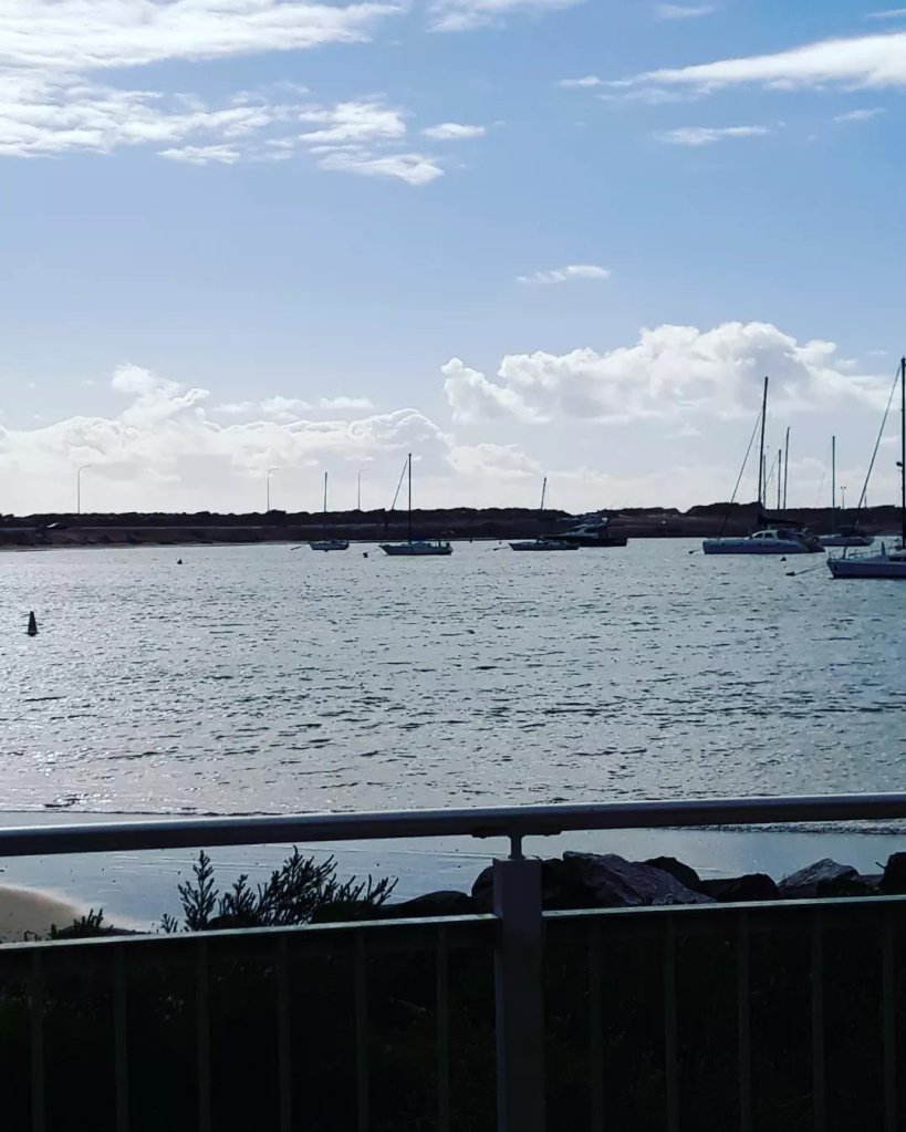 After a little lunch and read, off I go to visit the waterfront, the Jetty Baths. Quite a lovely walk, and then took shelter from a rain shower in a lovely little Lebanese restaurant, had a flat white while I waited out the downpour, rain shower quickly turned into quite a lot of rain indeed. I sat near the window that had a great view of the Leschenault inlet while I slipped my coffee. Then after awhile back out looking at the view of the Leschenault inlet, beautiful white sandy dunes in the distance as you walk on the wooden boardwalk. I can see this would be very popular in the Summertime, but I kinda like seaside places out of season, they look completely different indeed.