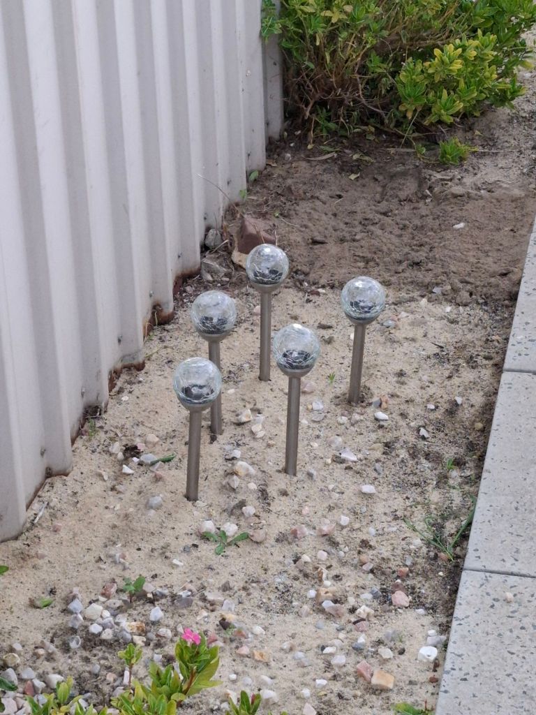 I totally redone the side garden after we had a new fence put in last summer. I can not wait for all the plants to bed in and really fill out the space. I also got new lights that are crackled glass look. They change colour and make my heart sing.